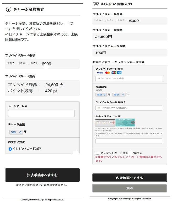 ※メールアドレスは入力しなくてもチャージできますが、未入力(または入力ミス)の場合、決済完了メールは送付されませんのでご注意ください。